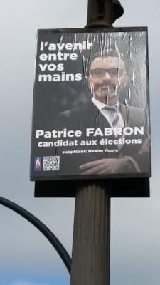 Una mañana esperando el autobús para ir al trabajo, me sorprendí mucho al ver colgado de una farola un cartel de propaganda electoral donde un candidato se postulaba para elecciones … en Marsella.