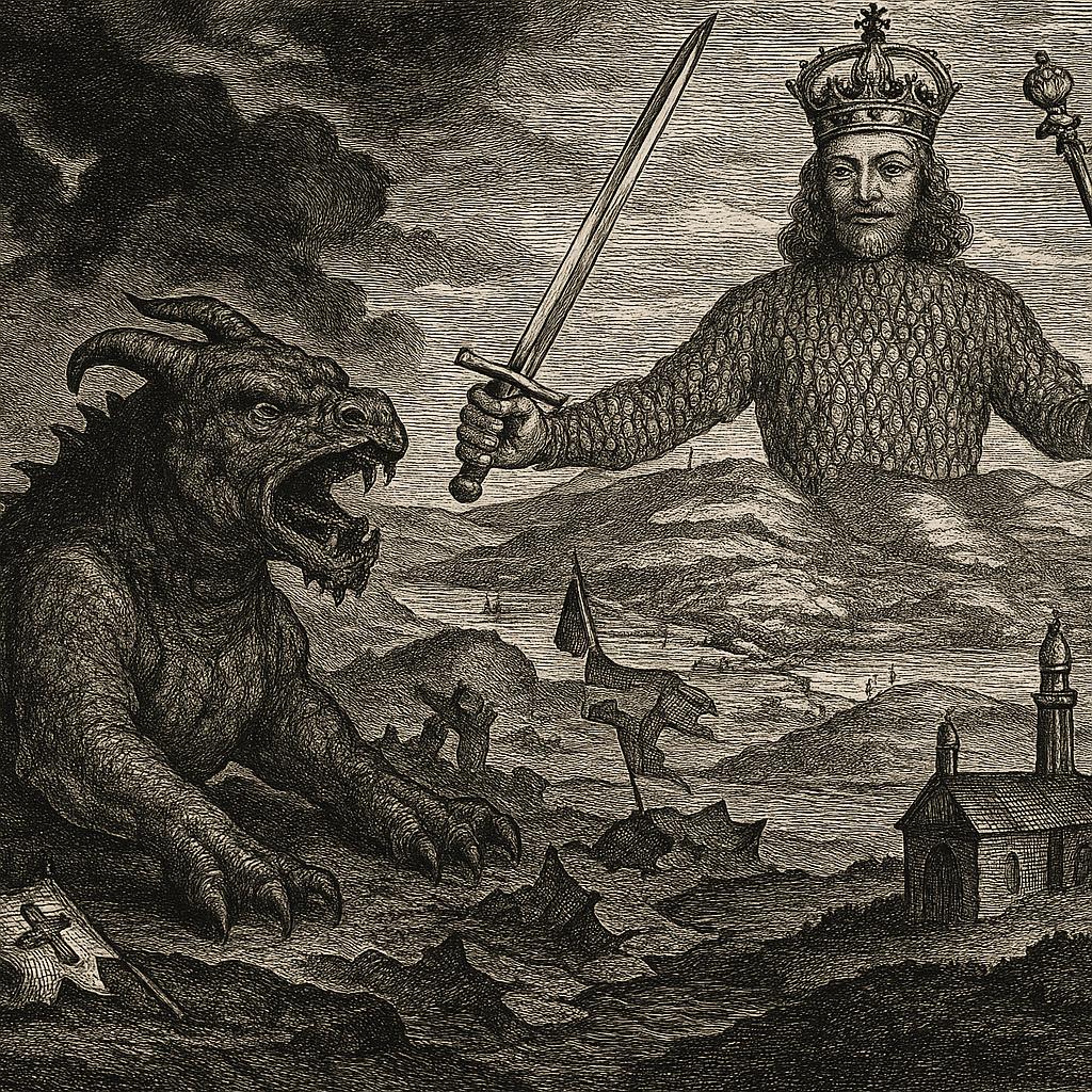 Leviathan «[T]omando para sí poderes y conceptos» exclusivos de la ecclesia, «no reconociendo ningún poder en el exterior» y «monopolizando