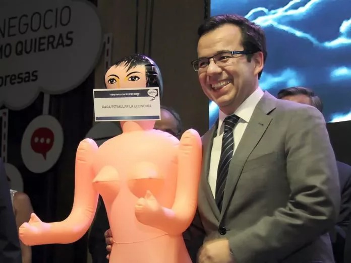 Roberto Fantuzzi desató la polémica en nombre de Asexma (Asociación de Exportadores de Manufacturas) al regalarle una muñeca hinchable al