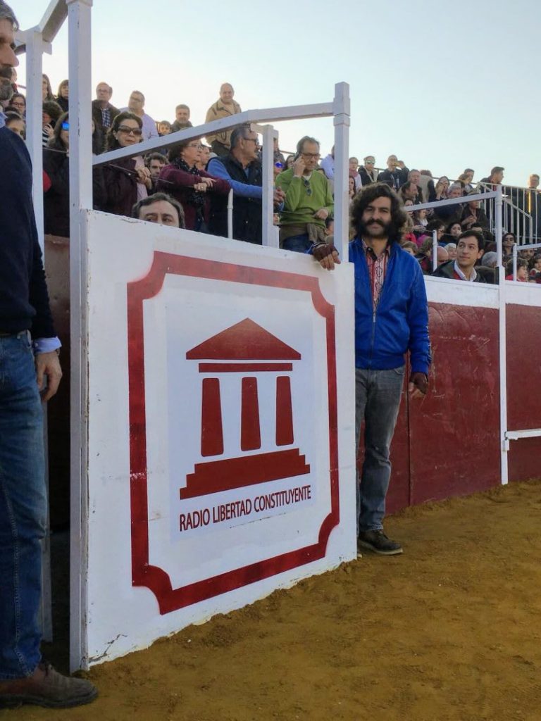 El torero Morante de la Puebla ha llevado un cartel de Radio Libertad Constituyente con nuestra seña de identidad, que es el templo griego, a la plaza de toros de La Puebla del Río. Compartimos las imágenes que nos manda, pues estamos seguros de que animará a todos los repúblicos a seguir difundiendo nuestras ideas al igual que lo hace Morante.